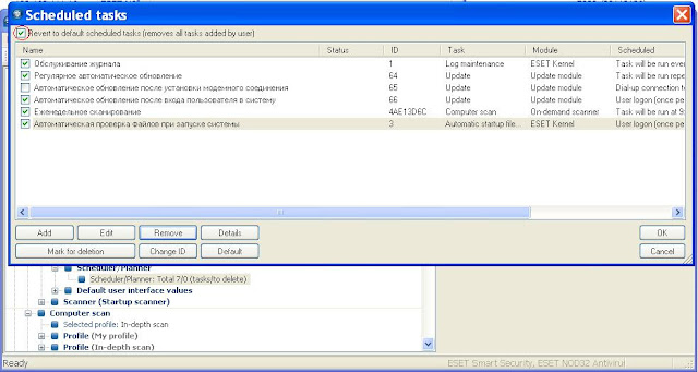Имеется ERA 4.0. Нужно пользователям раздать задания типа- сканирование в определённое время и пр. Было бы идеально, если бы всем применился нужный конфиг, заменяя полностью при этом имеющийся старый. Пока получается только наложение заданий друг на друга. Галку revert to default scheduled tasks ставил при загрузке новых задани, по идее должно было замениться. Не помогло. Help please !